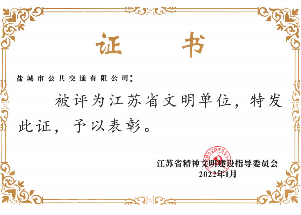 • 2022年1月公司獲評江蘇省文明單位